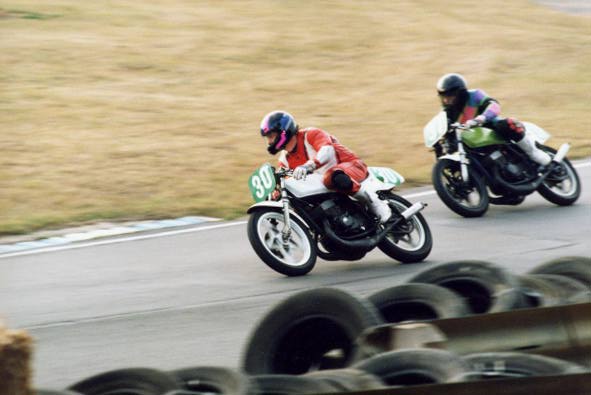After Drag racing, I decided to try my hand at the roundy-roundy stuff. Using the same bike, I entered the Earlystocks championship. Here I could race in a class with other similar bikes and not be at the disadvantage of not being able to afford the latest 'hot poop' machinery.